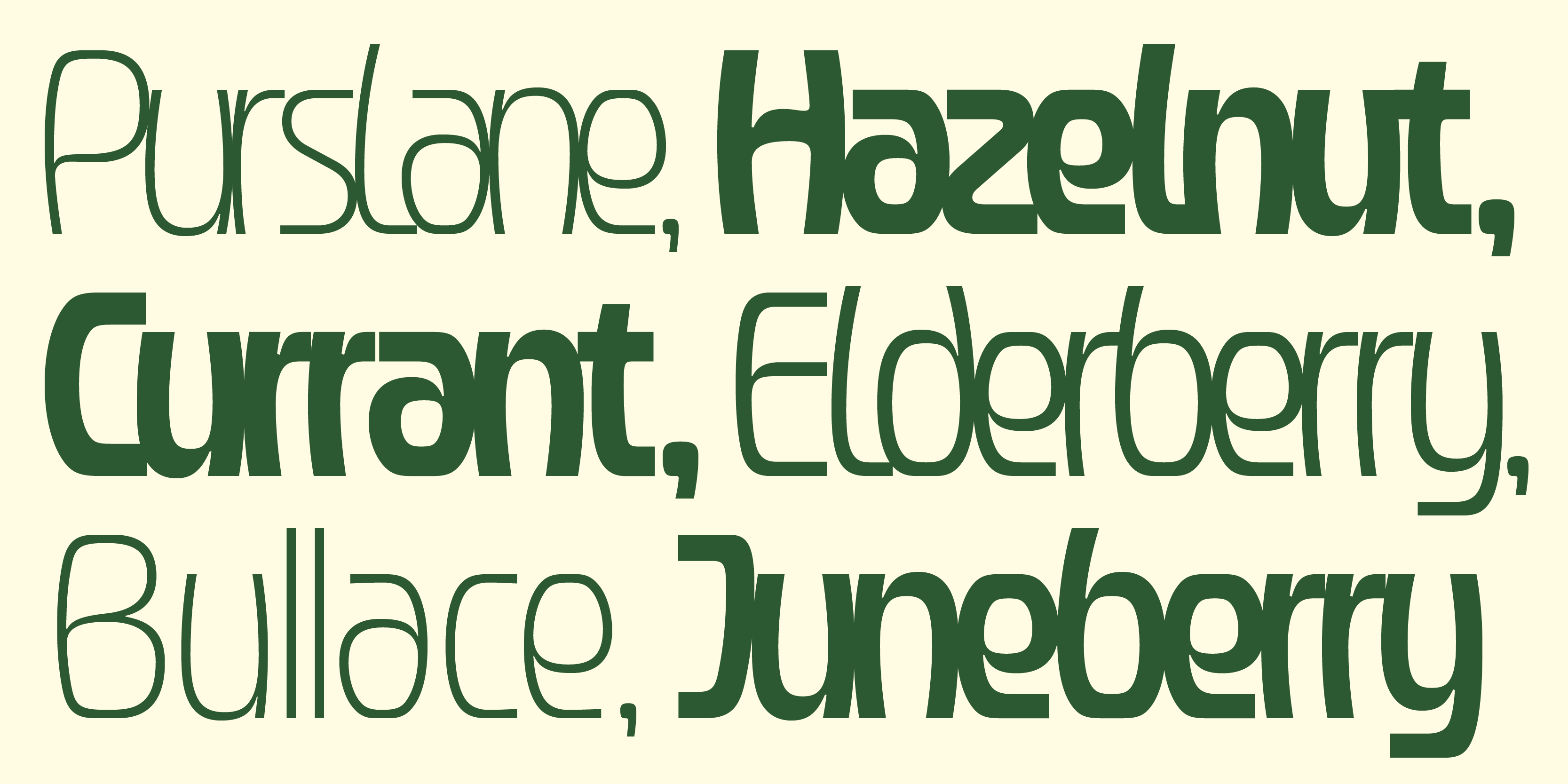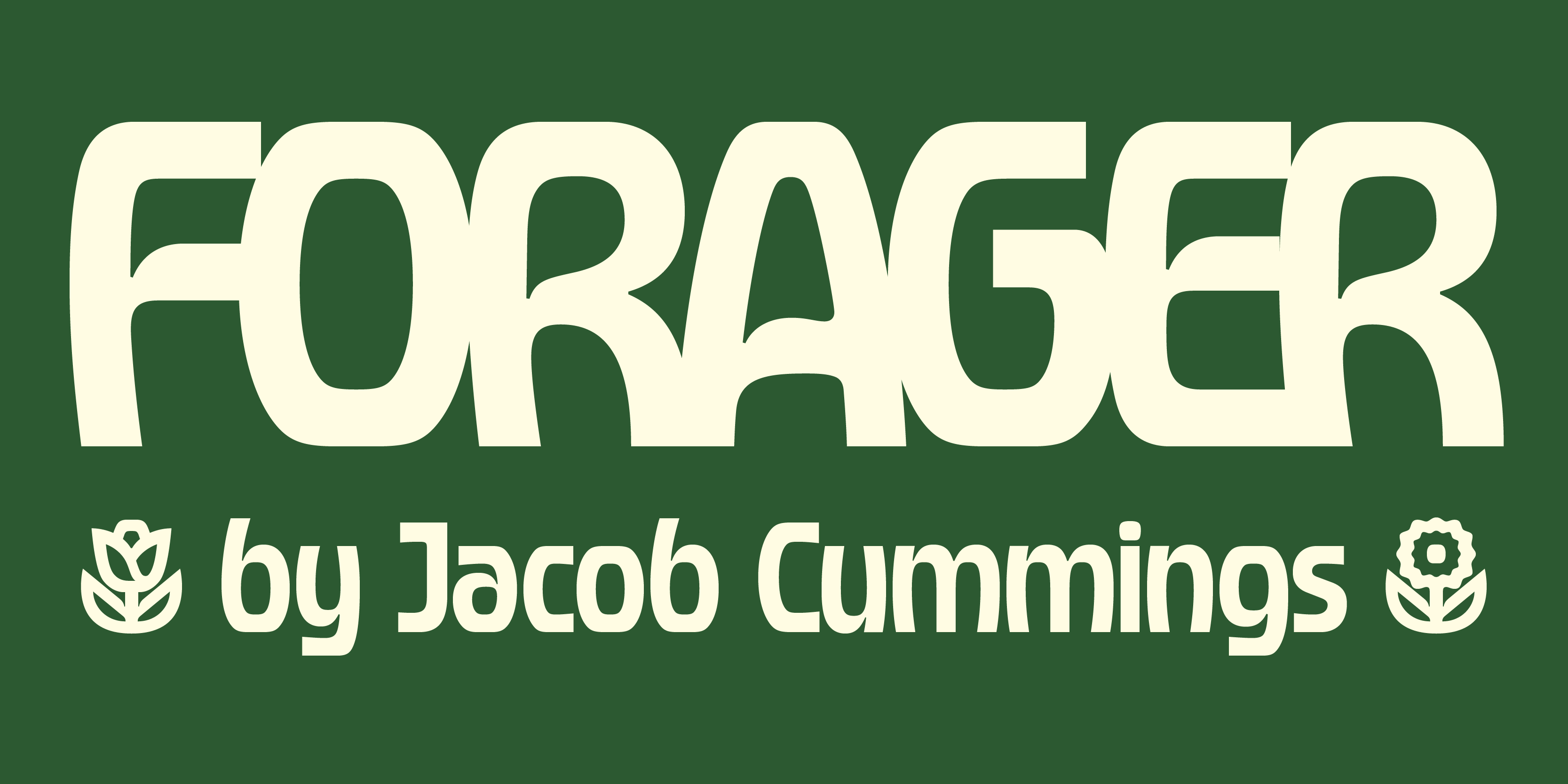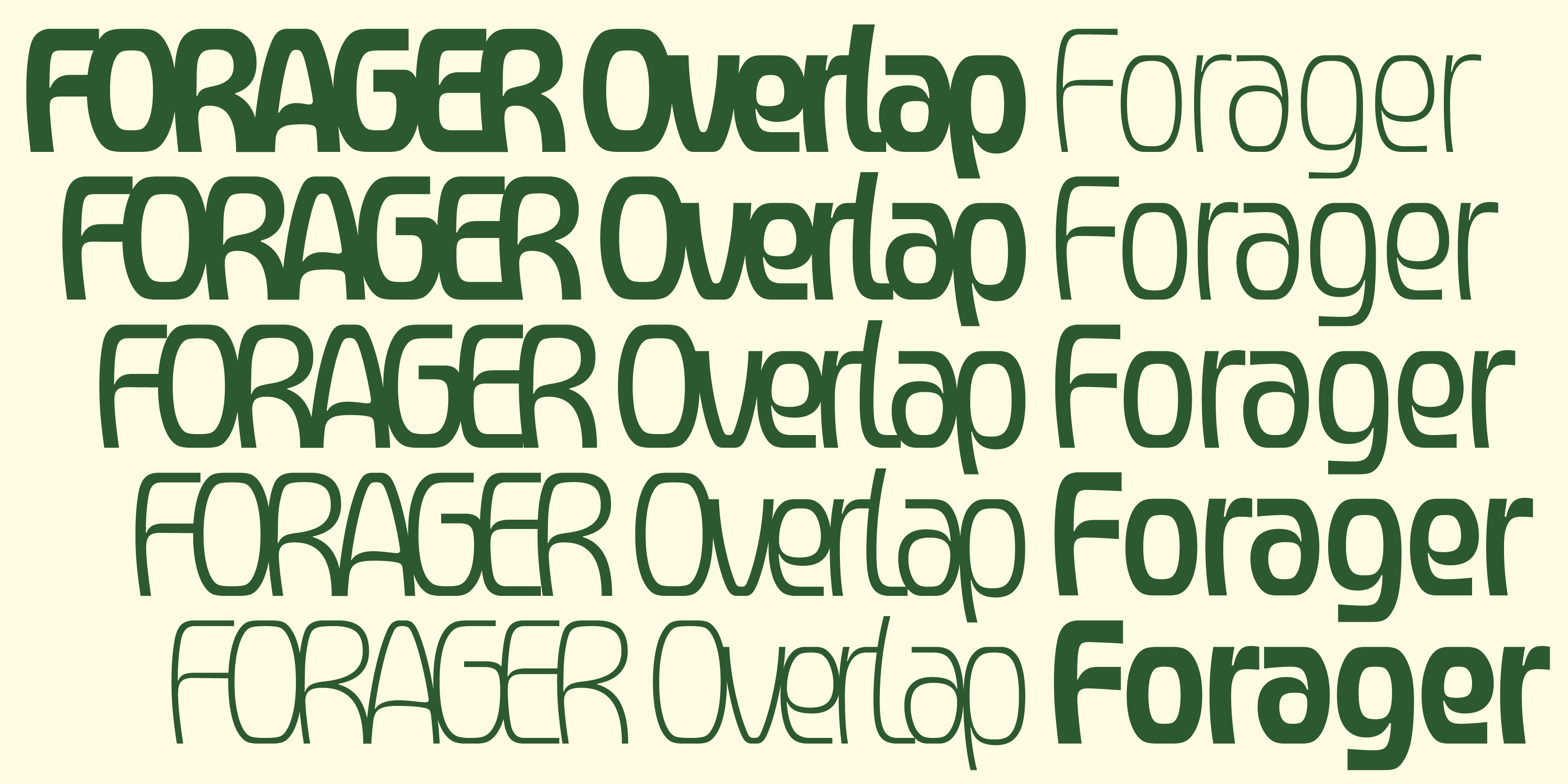 Thin Light Regular Medium Bold Thin Overlap Light Overlap Regular Overlap Medium Overlap Bold OverlapForager is a sans serif type family by Jacob Cummings from Dingbat Co. Based on some popular styles from the Photo-Lettering Inc. catalog as well as shapes from Art Nouveau illustrations. The typeface has a combination of bowed verticals and flat horizontals that give Forager its rounded square shape which helps to improve legibility well when overlapped. The family consists of five weights in both overlap, and tightly spaced styles, and includes two variable fonts.
